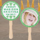 Traga estes fãs de mão verde e branco divertidos para a cerimônia de graduação para que você possa mostrar seus parabéns ao formando enquanto eles orgulhosamente recebem seu diploma. Cada ventilador de mão de graduação apresenta um lado com uma borda verde brilhante fraca, um trio de designs de boné e de fita correspondentes de cima e de baixo com CONGRATS e VOCÊ FEZ ISSO! e seu nome de formando no meio em uma fonte verde maior no fundo branco. Esses ventiladores circulares personalizados se invertem para uma borda de faísca verde correspondente e sua foto de formando no centro. Adicione um pouco de diversão à comemoração da graduação com esses divertidos fãs personalizados de mão, verdes e brancos.