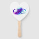 Símbolo infinito com uma bela pena pintada em cores roxas e azuis brilhantes sobre fundo branco.