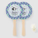 E ela vai para o altar! Um fã de mão com um chapéu para uma senhora com a sua mensagem contra um fundo de blocos diagonais azuis, verdes e brancos de faixas. Uma maneira divertida de se manter legal e obrigado convidados por vir ao seu chá de panela temático Derby ou mudar o texto e uso para uma festa de aniversário ou qualquer ocasião. CORRESPONDENDO a itens na nossa loja.