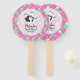 E ela vai para o altar! Um fã de mão com um chapéu de uma senhora com a sua mensagem contra um fundo de blocos diagonais de listras cor-de-rosa-quente, verdes e brancas. Uma maneira divertida de se manter legal e obrigado convidados por vir ao seu chá de panela temático Derby ou mudar o texto e uso para uma festa de aniversário ou qualquer ocasião. CORRESPONDENDO a itens na nossa loja.