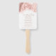 Um fundo de abstrato que lembra o mármore em tons de rosa pincelado suave através do esticado e veinado com ouro rosa de reluzente é o pano de fundo para o texto elegante da escrita e os layouts modernos da design nos pedaços desta bela suíte de casamento. Os fãs de mão de casamento mostrados aqui mostram o acima, mais seu programa de cerimônia e uma modelo para adicionar os nomes da noiva e do noivo e a data do casamento. O reverso tem os detalhes da sua festa de casamento e um obrigado breve. Procure ID644 para ver todas as peças de coordenação neste conjunto.