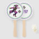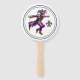 This paddle fan is shown in a festive Mardi Gras dancer print.
