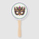 This paddle fan is shown in a festive Mardi Gras mask print.