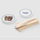 This paddle fan is shown in a festive Mardi Gras mask print.