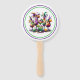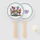 This paddle fan is shown in a festive Mardi Gras drinks print.