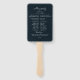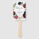 Linda aquarela Fall floral, fãs de mão de casamento. Azul-marinho elegante, borrado, esbranquiçado e artsy esboçaram flores com verde delicado. A parte traseira apresenta fundo azul de cor marinho sólido e linhas de texto branco para uma lista detalhada da festa de casamento.
