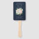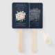 Um buquê lindo de Peonies cor-de-rosa em um fundo Marinho com texto para receber seus convidados para o seu casamento. Na parte de trás desses ventiladores está uma cópia sem som do design floral com todas as informações que seus hóspedes precisam saber. Encontre produtos correspondentes na minha loja para ir com esses ventiladores, como Convites, Salvar a Data, RSVP e muitos outros.