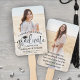Add a cool personalized touch to a high school or college graduation celebration with elegant custom photo rectangular hand fans. This template is simple to personalize with the graduate's pictures, name, class year and school. Include any additional wording of your choice such as degree, honors, thanks mom and dad, or a favorite inspirational quote. The font styles, colors and overlay opacity can also be customized with the Zazzle design editor tool. The modern minimalist black and white design features 2 photos of the graduate, trendy script calligraphy, and elegant classic typography. Create your own stylish and unique keepsake favor that's perfect for an outdoor graduation party or commencement ceremony. Congratulations to the graduate!