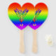 Uma maravilhosa fã de mão LGBT em forma de coração, que apresenta uma fênix arco-íris com aspecto gravado, asas estendidas e ascensão das cinzas. Está em um plano de fundo correspondente e usa um monograma personalizado para você mudar para suas iniciais, digitando na caixa.