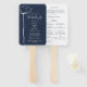 This program fan featuring a bold white floral on a dark navy blue background is a great way to welcome your guests and keep them cool in warm weather. The front side thanks them for coming. The other side shows your ceremony details and your wedding party. All fields are able to be customized to your specifications