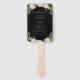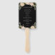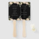 Esses fãs de mão do programa de casamento impressionantes apresentam buquês de flores esmagadas, neutras em aquarelas em neutro, cores de tons de terra como pêssego bege, rosa poeirento e verde macio com sotaques e folhas de ouro. Um elegante olhar floral de vassoura sobre um fundo preto escuro.
