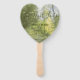 Um encanto rústico, este fã de mão de casamento apresenta um adorável fundo verde e amarelo na frente com "O amor nunca falha" escrito em uma bela fonte verde-cursiva. Abaixo está o nome do casal, local e data do casamento. As costas mostram uma mensagem adorável sobre um fundo verde claro. Peça o seu hoje!