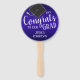Fundo de gradiente azul divertido com a placa-mãe preta e texto de script. Lê a opção "Parabéns ao nosso Formando" Ano de graduação com nome personalizado. A parte traseira do ventilador tem uma opção de foto do cobrir do cheio. Todo o texto pode ser alterado e ajustado.