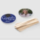 Diversão do fundo azul real com o papel de prancheta preto e texto de roteiro. Lê a opção "Parabéns ao nosso Formando" Ano de graduação com nome personalizado. A parte traseira do ventilador tem uma opção de foto do cobrir do cheio. Todo o texto pode ser alterado e ajustado.