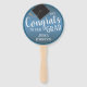 Fundo de gradiente azul divertido com a placa-mãe preta e texto de script. Lê a opção "Parabéns ao nosso Formando" Ano de graduação com nome personalizado. A parte traseira do ventilador tem uma opção de foto do cobrir do cheio. Todo o texto pode ser alterado e ajustado.