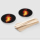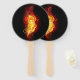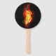 Pena de pavão brilhante feita de fogo e chamas sobre fundo negro.