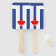 Each fan in this stylish set showcases the official Toronto city flag—a bold white stylized “T” inspired by the twin towers of City Hall, set against a rich blue background with a vivid red maple leaf at its base. The clean, geometric design highlights both Toronto’s unique urban identity and its integral place within Canadian heritage.