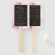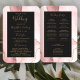 Este elegante e moderno fã do programa de casamento mostra um fundo rosa-pinto-claro, aparado com brilho dourado. O texto aparece em letras elegantes douradas coloridas e fontes copperplate em um retângulo fora de preto.