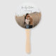 Um fã de mão do programa de casamento moderno, com um simples design com seus nomes em um elegante roteiro escrito à mão sobre sua foto favorita.