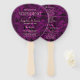 Simples, elegante, tipografia, fãs de mão de programas de casamento roxos marmoreados com escrituras modernas de ouro.