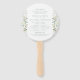 Descubra nossos elegantes fãs de mão do programa de casamento boêmia/primavera de verão. Mostrando uma sofisticada coroa entrelaçada com delicadas flores brancas, eucalipto e folhas verdes, esses fãs adicionam um toque de estilo refinado à sua cerimônia de casamento. Perfeito para uma celebração de casamento botânico única e na moda clássica.
