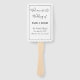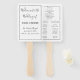 Um adorável fã de mão do programa de casamento, esta é uma maneira de incluir o seu programa de casamento na sua cerimônia, este fã de casamento apresenta um modelo fácil de usar para inserir informações. Com um fundo branco e um texto preto, personalize o seu hoje!