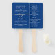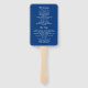 Moderno, minimalista, elegante, programa de casamento azul real com caligrafia simples leques com coração de corda dourada.
