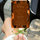 Este elegante e moderno fã do programa de núpcias mostra um fundo laranja queimado, aparado com brilho dourado. O texto aparece em letras elegantes douradas e fontes em placas em um retângulo marrom nutmeg.