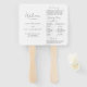 Fã de mão do programa clássico de casamento preto e branco, apresentando um simples design com um toque moderno e minimalista. As palavras de destaque estão em uma tipografia de script elegante e o texto restante está em uma fonte serif tradicional.