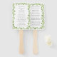 Leque de mão para programa de casamento rústico com seus detalhes cercados por folhas de oliveira. Seus detalhes estão em uma fonte cinza médio. A frente tem os eventos da sua cerimônia e o verso tem os membros da sua festa de casamento. Os leques de mão são perfeitos para um casamento ao ar livre no verão.