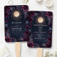Mantenha seus convidados legal e informados com este elegante fã do programa de casamento "Midnight Garden Moon". Apresentando uma lua de cheio brilhante e florais ricos e moody em tons de burgu profundo e ameixa, este fã é um complemento perfeito para o seu casamento celestial ou de jardim. O ventilador de mão fornece detalhes de sua cerimônia em um formato exclusivo e prático, garantindo que seus convidados permaneçam engajados e confortáveis durante o evento. A design escura e romântica cria uma estética espantosa para um casamento à noite ou ao ar livre.