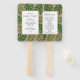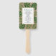 Folhas tropicais verdes e douradas, fã de mão do programa de casamento rústico. Apresenta folhas de Split Leaf Philodendron (Monstera deliciosa) ou de Queijo Suíço e folhas de palma em verde com contorno de ouro em papel kraft. A sua redação está num quadro branco com contorno dourado.