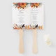 Lindas, vibrantes, laranja e flores mauve acentuam os fãs de mão do programa de casamento Floral de outono Sunset. Apresentando brancos suaves, verde sábio e toques de burgundy, esta design tem uma essência de elegância eterno para o seu grande dia.
