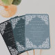 Nosso fã do programa de casamento do estilo art deco apresenta os detalhes da sua cerimônia em letras brancas elegantes, enquadrado por detalhes do estilo de recorte branco nos cantos de um fundo azul de ardósia. O verso lista os membros da sua festa de casamento com campos de texto facilmente editáveis. Coordena a nossa coleção de convites de casamento de Beaux Arts em Tourmaline. Use os campos modelo para adicionar informações sobre sua cerimônia e noivado e clique em "Personalizar" para reposicionar elementos, se necessário. Precisa de ajuda? Entre em contato comigo através do link "Perguntar a este Designer" nesta página.