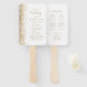 Este elegante e moderno fã do programa de casamento mostra um fundo branco coberto de cinzas douradas. O texto aparece em letras elegantes douradas e fontes em cores.