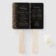 Este elegante e moderno fã do programa de casamento mostra um fundo negro coberto de brilho dourado. O texto aparece em letras elegantes douradas e fontes em cores.