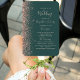 Este elegante e moderno fã do programa de casamento mostra um fundo verde escuro coberto com brilho rosa dourado. O texto aparece em letras elegantes, cor-de-rosa-rosa, e fontes em prato.