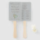 Um adorável fã de mão do programa de casamento azul e cinza, esta é uma maneira de incluir o seu programa de casamento na sua cerimônia, este fã de casamento apresenta um modelo fácil de usar para inserir informações. Com um fundo azul e texto de cinza, personalize o seu hoje!