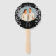 Simples, elegante, fã de mão do programa de núpcias negras com padrão e foto de cinza de prata. Escolha perfeita para casamentos contemporâneos de praia de verão.
