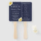 Simples Marinho Azul Rosas Amarelas Script Floral Fã do Programa de Casamento Floral. Simples e moderno fã de mão de casamento com um programa de casamento. Este moderno cardápio de casamento modelo tem lindas rosas amarelas em cantos sobre um fundo azul marinho escuro e um texto branco moderno. Você pode personalizar facilmente todo o texto do fã - personalizá-lo com os nomes da noiva e noiva, data e local do casamento, programa do casamento...