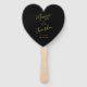 Esses fãs personalizados de mão do programa de casamento apresentam um moderno e minimalista design de escrita manual com letra dourada em um simples fundo preto. Personalize com seus nomes e data de casamento na frente e nos detalhes do programa de casamento na parte de trás. Os melhores votos para o seu casamento e casamento! Desenhada por Susan Coffey.