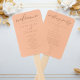 Pêssego é a nova cor da moda para eventos de verão. Nosso leque de programa de casamento de pêssego doce apresenta um elegante roteiro marrom claro para um evento moderno e minimalista à tarde para uma noiva feminina que ama estar atualizada e moderna.