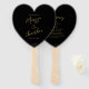 Esses fãs personalizados de mão do programa de casamento apresentam um moderno e minimalista design de escrita manual com letra dourada em um simples fundo preto. Personalize com seus nomes e data de casamento na frente e nos detalhes do programa de casamento na parte de trás. Os melhores votos para o seu casamento e casamento! Desenhada por Susan Coffey.