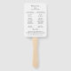 Fã de mão do programa de casamento clássico, com design simples e chic, com os detalhes do evento em um roteiro elegante de caligrafia.
