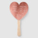 Um simples mas elegante leque de programa de casamento em forma de coração para um tema de casamento dourado-rosado. Os títulos e os nomes (e as iniciais) da noiva e do noivo são escritos em uma elegante caligrafia, o restante em letras maiúsculas. O fundo é rosa dourado-rosado, o texto é branco. No verso, tem do lado esquerdo o programa da cerimônia de casamento e, do lado direito, os membros da festa de casamento (com 2 colunas diferentes para a equipe da noiva e a equipe do noivo) e abaixo deles uma curta mensagem de agradecimento.