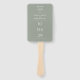 Um elegante leque de mão para casamento minimalista em verde sage com todos os detalhes do seu grande dia em tipografia clássica e sofisticada. Desenhado por Thisisnotme©