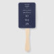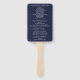 Um elegante leque de mão de casamento minimalista azul-marinho com todos os detalhes do seu grande dia, apresentados em uma tipografia clássica e sofisticada. Concebido por Thisisnotme©