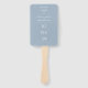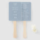 Um elegante leque de mão para casamento minimalista azul empoeirado que inclui os detalhes do seu grande dia em tipografia clássica e sofisticada. Concebido por Thisisnotme©
