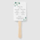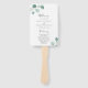 Ventilador de mão do programa de casamento elegante com um simples design com cor d'água pintada de verde-sage eucalipto no canto superior esquerdo e canto inferior direito. O lado frontal tem a sua ordem de cerimônia e o lado de trás tem a sua festa de casamento e obrigado. Estes fãs de mão do programa de casamento botânico, com uma reviravolta moderna, são perfeitos para um casamento de primavera ou verão.