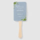 Este elegante leque de mão para programa de casamento floral verde moderno pode ser personalizado com suas informações em tipografia chic em um fundo azul poeira. Projetado por Thisisnotme©